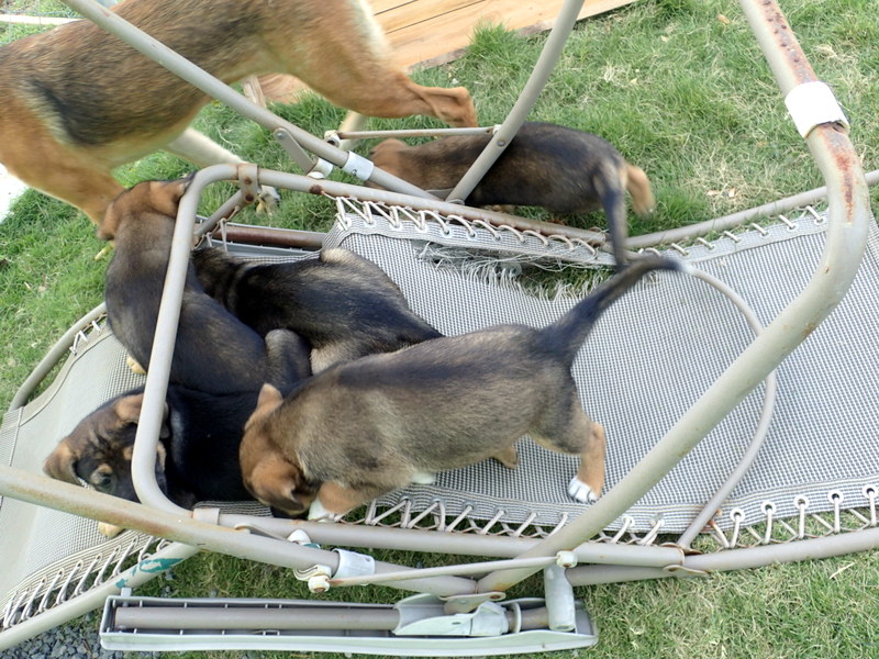 05/30/2015 Three of the babies have left us, moved to their furr-ever homes and I cried. It was hard to say good-bye to these sweet furry babies that I have loved and cared for and spoiled the last 6 weeks. They have been A LOT of work, I have had many sleepless nights, up before it’s light out mornings, I’ve done laundry every day, scrubbed floors and kennels everyday, made formula daily, washed puppy food dishes and toys and bedding and spent untold numbers of hours just sitting and watching them while the dust collects on my furniture, the dirt thickens on my window screens and the sweat runs down my back. Not to mention the kazillion steps up and down to the back yard. WHY AM I NOT SKINNY DAMMIT?? Do I regret them being born? HELL NO!! I love these babies so much.