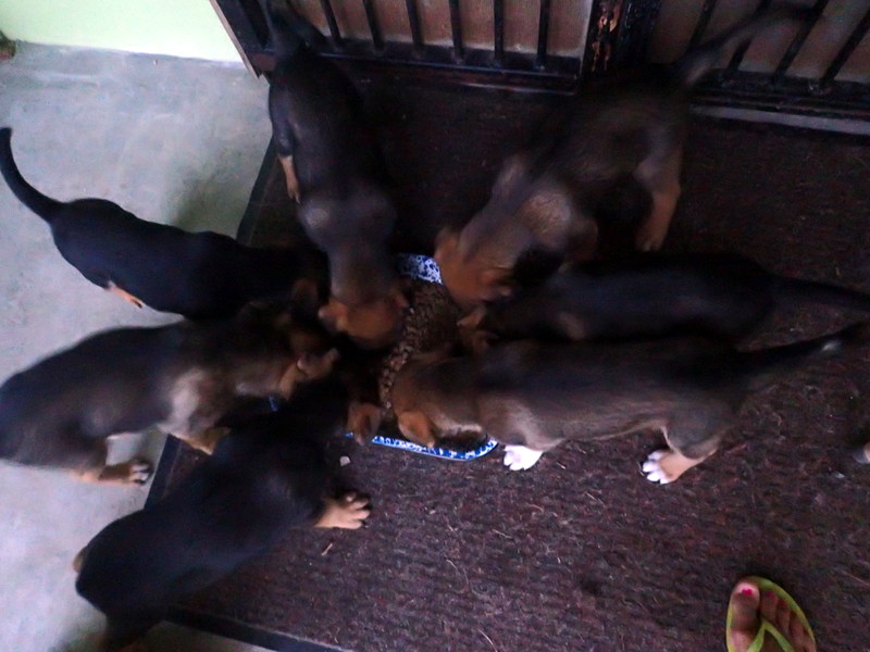 The 3 that went to new homes are doing well. One has a 2 year old rottie sibling and they are fast friends, playing all day, pottying together and sleeping together, inside. The other 2 are together and will be spoiled I’m sure. They have a nice crate inside and toys and lots of love. My heart is OK with these 3 being gone, they will be loved and cared for.