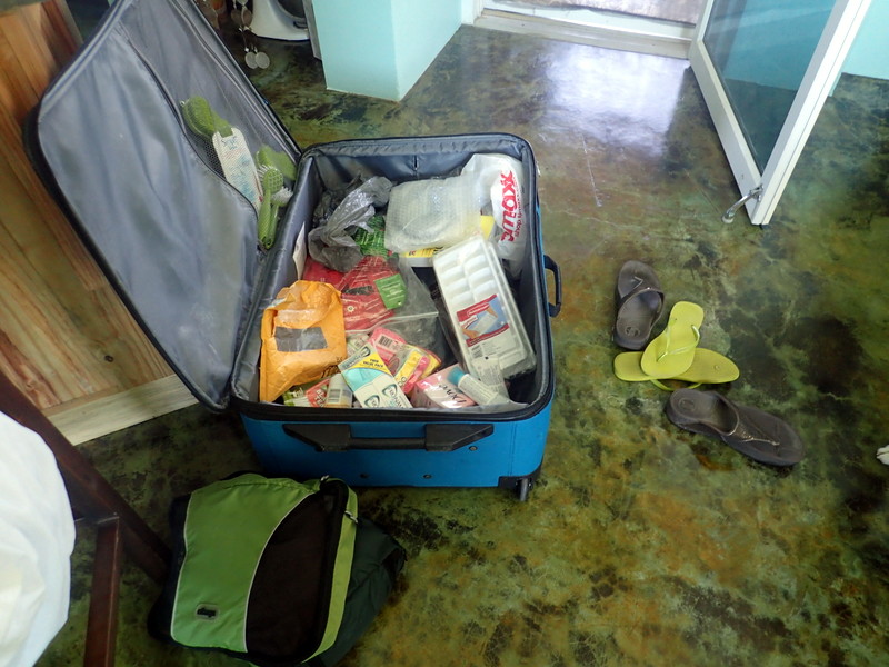 While back in the states this time shopping I saw skirts and tops and shoes galore that I loved but then I remembered why we downsized, why we live the life we do, why we don’t NEED the things we think we WANT. I thought of my life on the island and the fact that I wear the same 3 or 4 dresses (old worn out cotton things) every week. I sweat in them, clean in them, scoop 39 piles of dog crap in 5 minutes in them and many times I nap in them. They are all I need to wear around here. I also have my regular “go to” choices that I wear most of the time. I still have new clothes I have never ever worn that I bought before we moved. And I’ve given away bags of clothes here on the island. While in Marshall’s, my 3rd shopping attempt, I just stood there and looked around at all of the stuff in there. Vases for your flowers, fancy candle holders, dishes, pots and pans, clothes, all kinds of handbags and suitcases (I adore NEW suitcases), then I looked at the people, so intent on buying the things in the store, some had carts full of stuff. I wondered what their lives were missing that they kept buying all this shit, and then I remembered myself and how I normally behaved in a store. These people don’t know that they don’t NEED this stuff, they have not reached that point. Some never will, some already have and are working on their plan. I’m glad I’m over it.
