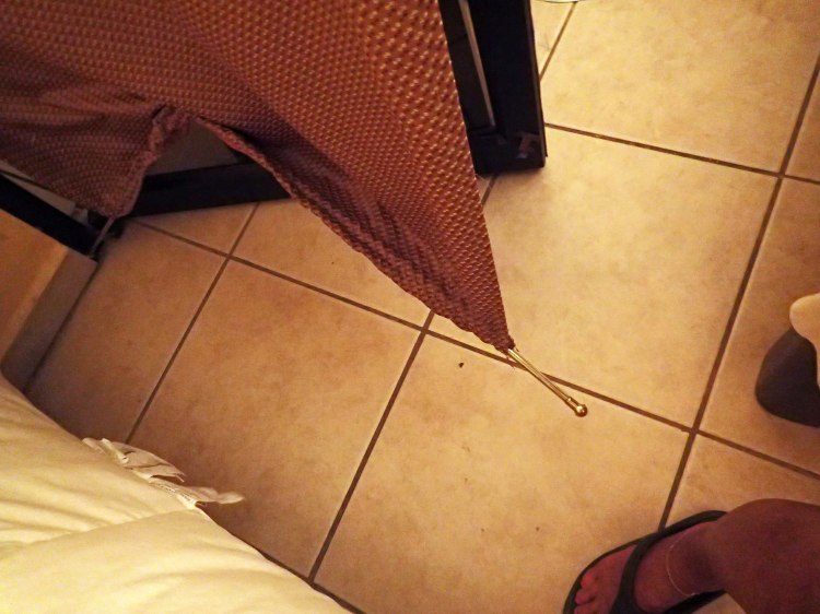 I took Max out early to go pee and when I got downstairs the owner was naked except for a blue striped towel around his waist, sweeping the floor. He was all nonchalant, like everyone sweeps the lobby of the hotel naked. He unlocked the doors (which I found odd that he kept them locked at ALL times) and finally, Max peed in the lot across the street for like 7 minutes straight.