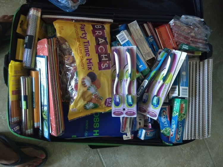 I was fortunate to have two different high school friends visit Roatan just a few days apart from each other. Mac and Phyllis from Florida came with some friends. I gave them an island tour of the east end, we came here, met the dogs then went to Cal’s for lunch. A few days after that Ginny and Gary from PA came to visit. We did the same things but didn’t do lunch at Cal’s. Both of them brought a lot of things for the kids, school supplies, candy and clothes. My downstairs was looking like a store. I had school supplies from: John and Lizeth, Dave and Kerry, Mac and Ginny and Julie and Brian. I also had the stuff that was dropped at Daniel Johnson’s Sloth and Monkey farm for Because We Care. I feel blessed that people are so willing to help Nidia and I do what we do. Nidia and Franklin came last week and picked up most of it to store until school starts in February.