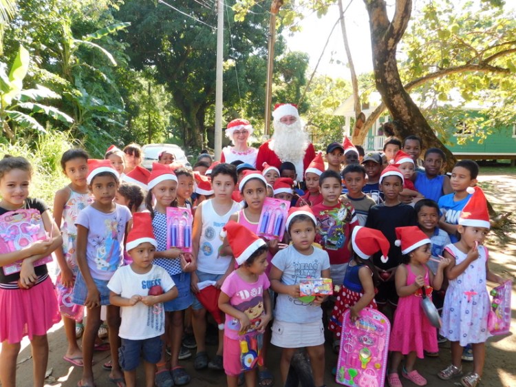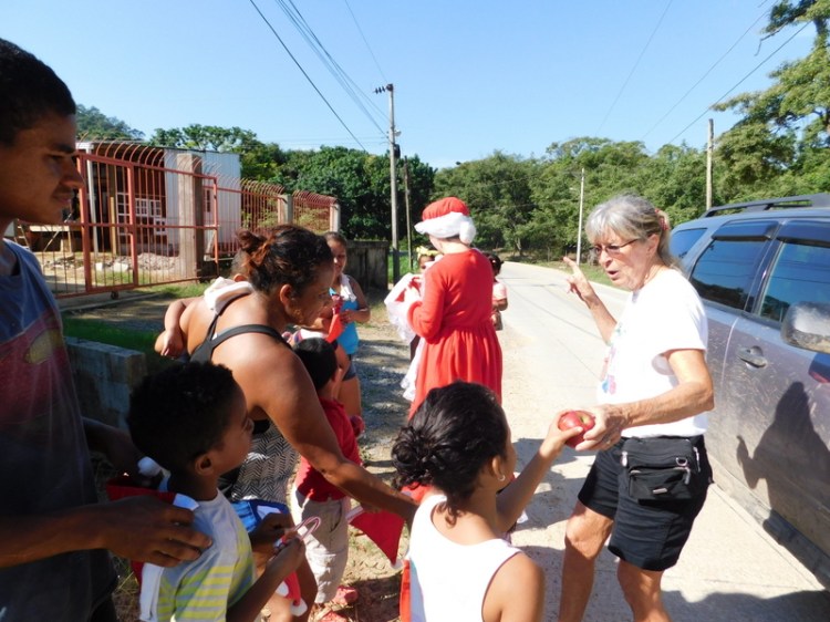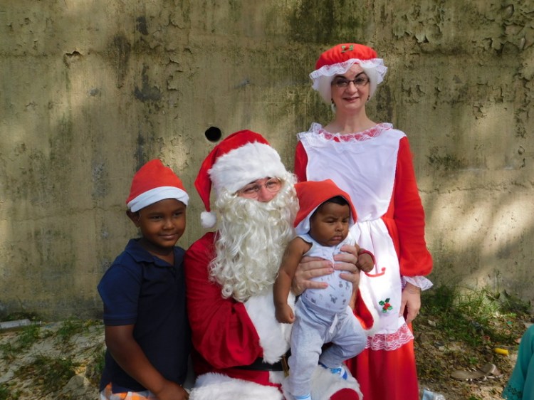 The Christmas parties went off without any weather problems. I rode with David and Gretta to Mudhole. This is an area of Roatan near the awful dump. There are lots of families with children who live out that way. Nidia had her 2 kids helping and my friend Judy helped out too. We made 4 stops along the road at designated places where families were waiting. Mr and Mrs Claus were a huge hit!