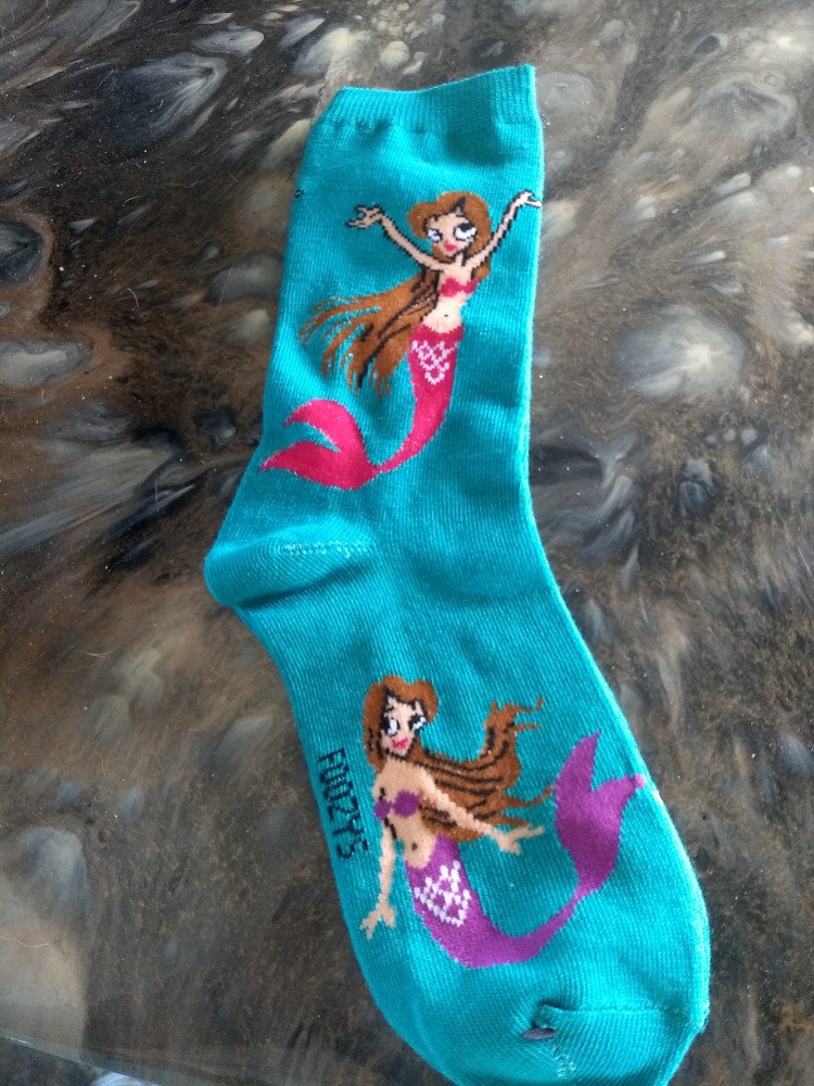 After that mess, I left the house. I was to meet Rosemarie at her property very close to us at 9:30. I have met Rosemarie once at the swearing in of the mayor for his second term. She has been following my blog and always comments. She told me she got me something while she was in Sonoma and wanted to give it to me, so I met her on my way to town. She got me mermaid socks, a beautiful mermaid key chain and gave me a mermaid sticker from Palau. So sweet of her to do this, I love everything.