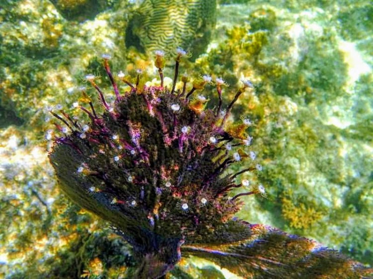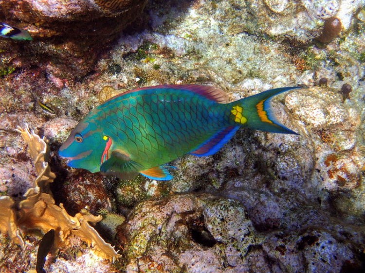 Deb went diving with Subway one day and had 2 great dives. I took them to Arch’s Iguana farm, we had a nice talk with Mr Sherman and after that we went to Daniel’s monkey and sloth hangout. Once they were done with the animals we went out snorkeling with Daniel and Dustin. It was the first I had been in the ocean for 9 months, at least. Ridiculous I know, I live on an island. The water was warm but there was a good current and it was choppy even inside the reef. It was hard to take photos because I couldn’t stay still.