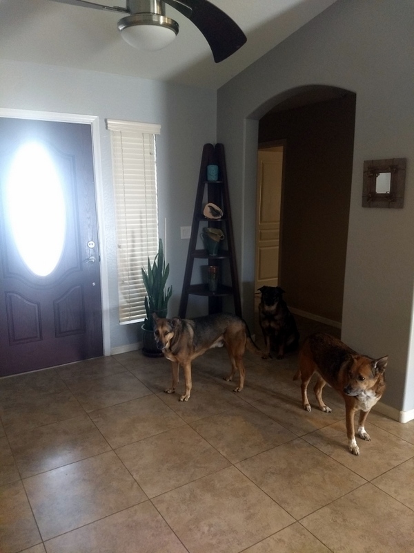 The other day I was reading Fakebook while I had a cup of tea, pre dog walk. Someone posted that there were 2 pitbulls loose in the neighborhood. This made me really nervous because my friend and his dogs were attacked by 2 pitties a few months ago. There are leash laws in Arizona, people are NOT allowed to let their dogs run loose. I was nervous even though I have a walking stick with a taser on the end. I had Bill walk Highway first then I walked Barrio and he walked Max and Gringo with Barrio and me. Normally we don’t walk together because the ones not walking with me cry and whine and jump up because they want to be with me. This is still the case. We didn’t see any loose Pitbulls, luckily. I wish the people who see them would call animal control BEFORE they post it on Fakebook. Posting there does no good, especially when you don’t even say what part of the development you saw them.