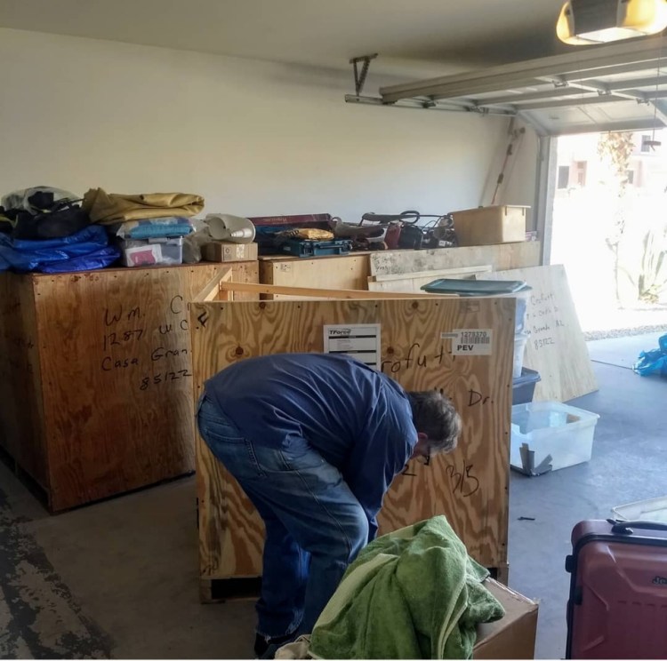 Bill’s crates arrived early January, all 5 of them. He opened a few and got out the art and the rest of the house stuff that I packed but couldn’t fit in the crates we shipped when I moved.