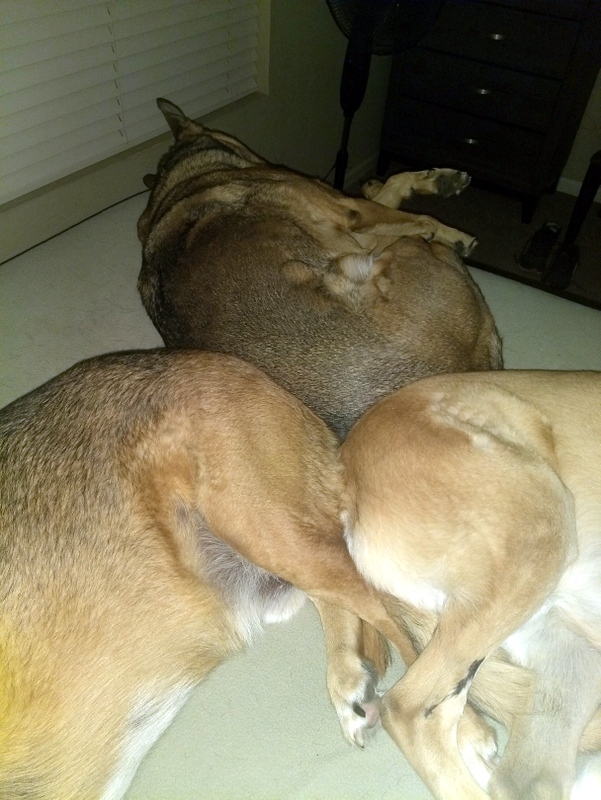 Yesterday I took all 3 dog crates apart and drug them outside. They were gross, so I scrubbed them. Then I bathed all 4 dogs. Since the dogs were all clean I had to wash the towels we throw on the leather chairs if they are wet. Clean dogs, clean crates, clean towels.