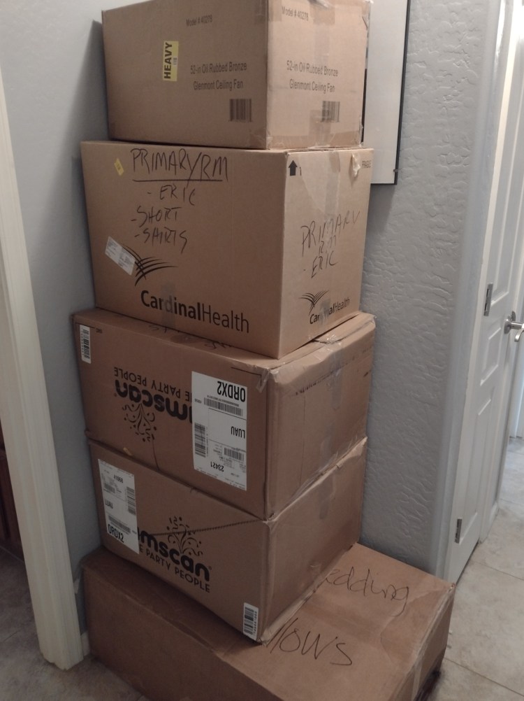 We have been packing for about a month. It’s almost done. It’s so stressful trying to figure out what we’ll need for the month it takes our stuff to arrive. I’ve pretty much got the pantry empty, next will be to clean out the chest freezer, put it in the fridge freezer and pack stuff in the freezer that we are taking. Not having to deal with furniture is a huge bonus but also daunting, because we’ll have to buy all new furniture, ceiling fans, lighting, plus all appliances. UGH. Yes, it’s fun buying new but it’s also a chore. The closest store will be 45 min away. I know that sounds like not much but here in AZ everything is within 30 min. So easy it’s made me incredibly lazy.