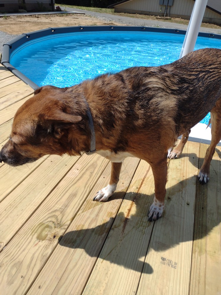 Right after we moved here my neighbor said I needed to get my yard treated for fire ants. I hadn’t seen any and didn’t bother to call anyone. Then we had torrential rain and the fire ants came out in full force. I found out just how much fire ants hurt, and how much they itch and then blister, by stepping into a nest in flip-flops. My fear was the dogs getting in them, especially Max with the tons of fur on his body. I called several places to come treat the yard and they were all booked out for a few weeks. Most charged $125 and said I would need to have it done a few times a year. I called several different exterminators. One guy came out and said he could do it that afternoon but it was $200; however, there is a year warranty. So if I see fire ants again within the year, they will come back and spray. That sold me. He came back that afternoon and treated the yard. The front yard didn’t have as many nests as the back so I was letting the dogs out front to go to the bathroom. I kept them in for a few hours after the yard was treated and he said to give it a good week to kill the ants. Ten days after he treated the yard I decided to let the dogs out back again, it’s fenced out there, and much easier to keep an eye on them. We were just coming in and Barrio was on the porch jumping around and licking at his feet. Damn, his back legs had fire ants all over them and they were crawling up his legs. I tried to get as many off as I could, then took him out front to the concrete and the hose. I laid him on the driveway and washed them off. I was picking ants and squishing them but they were still crawling on me and biting me. I took him back inside, stuck him in the tub, and filled it up. I shampooed him really well and rinsed him a few times. Once he was dry I gave him a Benadryl and canceled my dinner plans for the evening. I wanted to keep an eye on him. He was groggy but not scratching. I didn’t want to put anything on him because he would lick it off. He was fine the next day. I called the guy who sprayed and he said he could come on Tuesday. He re-did the whole yard. He was surprised there were so many new nests after he treated the yard. This time seems to have done it because I don’t see any ants in the nests. However, I see so many nests along the road when I walk the dogs, it’s crazy.