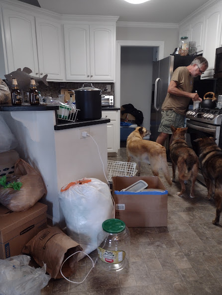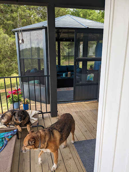 The dogs and I have been hanging around the house most of the time. I usually walk them 3 times a day, morning, early afternoon, and after dinner. I try to wait until after 8 on weekdays so that most of the “going to work” traffic is gone. After dinner I wait until 6-ish, most people have gotten home and are inside. Then on the weekends, I try to walk before 8 AM, when people are still sleeping. I have met a few people walking their dogs, that’s the easiest way to meet people in a neighborhood. Several people comment on how well-behaved Max and Barrio are. They don’t know that they are secretly psychopaths, that Barrio does the loop around the house, crying, with a toy in his mouth for 30 minutes at a time, or that Max has to smell my breath every time I eat something. Max has food issues, Barrio has mental issues.