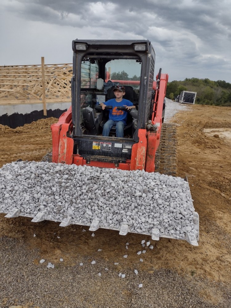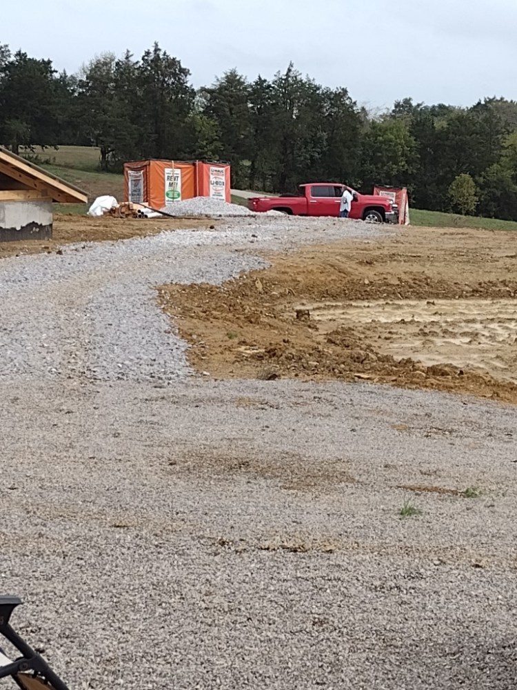 It rained for almost a week and we were surrounded by 30 muddy wet acres and 16 muddy wet dog paws. They were getting tired of having their feet washed several times a day. I contemplated boots for them but they’ll lose them and I will spend all of my time looking for them. They were some mighty bored dogs. They put stone on the whole driveway EXCEPT where they were running the dozer back and forth. That meant I had to traverse 50′ of deep slippery mud to get the boys to the stone driveway. That has since been remedied.