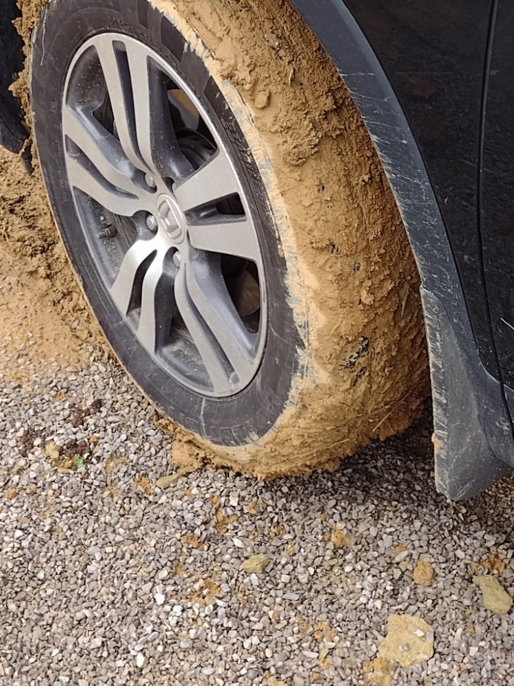 UGH. Sticky slippery thick MUD.Planning on stocking this with fish. notMy poor car.My friend said it looks like I drove through peanut better then cat litter. She’s right.Cleaning these several times a day.