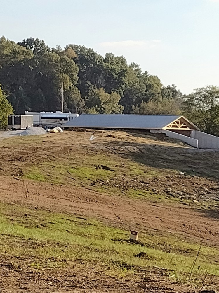 The guy we hooked up with before arriving has proven to be amazing. There is nothing Aaron doesn’t know how to do. He did the concrete floor for the shop (with Bill’s help) and he and Bill recently completed putting on the metal roof. He actually used a chalk line on the roof to get the nails in a straight line. Both sides of the roof are finished and it looks amazing. They framed in the opening and he has ordered the metal for the gables of the roof. Aaron has a regular door for the shop, we need to order a garage door yet. Timing was everything since my new washer and dryer and freezer arrived the 29th and the roof was completed on the 28th.