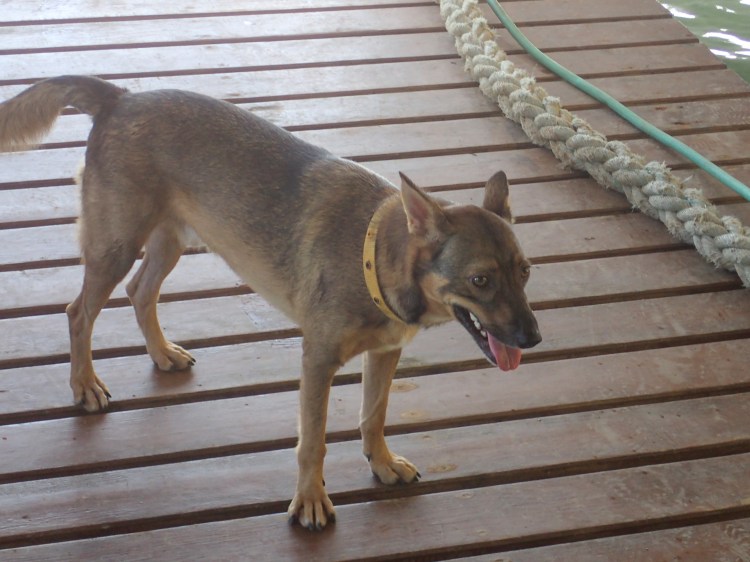 Entering the mangrovesSo pretty. The tunnels were made by the Paya indians a long time ago so they could go from place to place without going out in the open sea.Teri floating alongOn our way backMarcia and Dennis have one of Frito’s pups, Duke. Isn’t he handsome?Duke and his big sister Shay. Both sweet dogs and very loved.