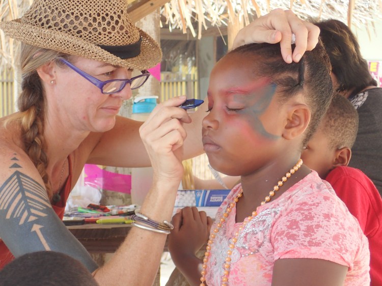 My friend Layle came to do face painting, Ann was there with Abraham (a boy she sponsors at the Charmont Academy) and his sister Brishanne. My sweet young boyfriend from the Mother’s Day flower making at Cattleya was there also, Matthew, he is a doll. He has a smile that melts your heart and the sweetest demeanor. Paul went with me to help, Amy was there, Milesse, Judy and Toni came also to help. It’s usually feast or famine with the help, this day we had enough, sometimes we don’t. We were very grateful to those who came, it’s nice to have support from friends.
