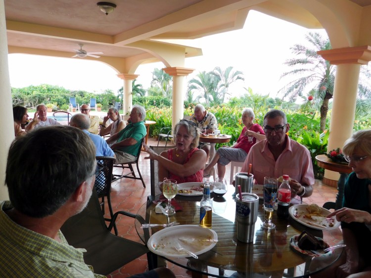 04/15/2015 It’s been HOT HOT HOT in the tropics. Boob melting sweatiness. I mean, mine feel like they’re melting off but every time I look, they’re still there. Sunday morning I baked for several hours, making coconut macaroons for a dinner party on Sunday at Chuck and Nancy’s. I think I even sat in the sun for awhile that afternoon. I know I was being ultra lazy because when Bill told me it was 3:30 I freaked. I still hadn’t showered or anything. and we had to be there by 4. It was a fabulous evening, getting to meet Lynda and Dave and spend time with Chuck and Nancy and Annie and Charlie. Nancy made a wonderful meal for all of us, as usual. We didn’t stay very late, we had 4 hungry dogs at home.