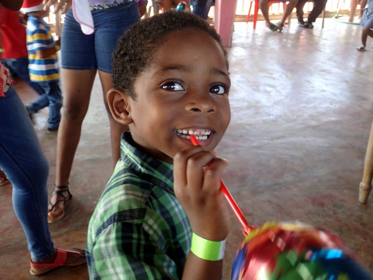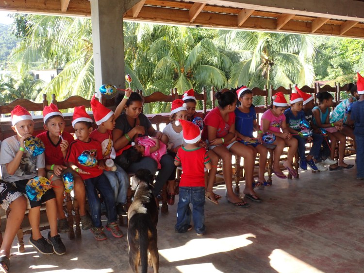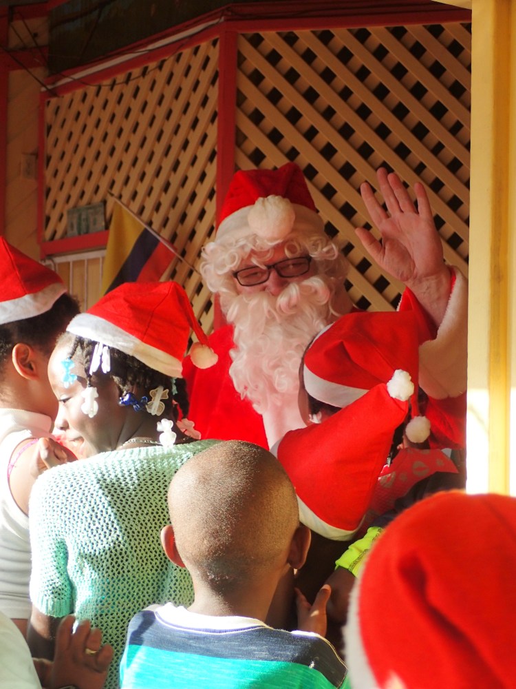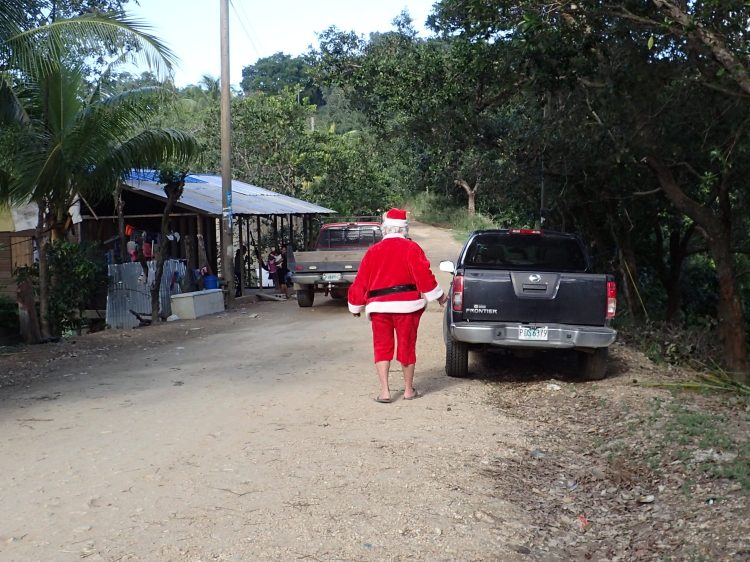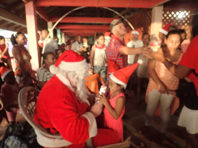 Our very own tropical flip flop wearing Santa, AKA Sully.Everyone got a Santa hatOne of the local homesFridge/ bench, it’s versatile.The Queen Bee, Nidia, getting the group organized. Sort of.These children are so beautiful. This one loved Santa, she was beside him all day.Checking the list..naughty or nice. Not really, we had a list of kids that would get gifts.Happy kids, toys and candyMy idea of a selfie.