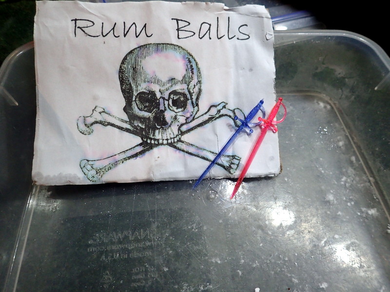 The next day was the Pirate Party out in Calabash Bight. We were making rum balls in the morning to take, seemed fitting for a Pirate Party. This is the link for the Rum Balls, they were a huge hit. I made a sign and amazingly even had little pirate swords to stick in them. The sign got wet along with everything else on the ride to the party. Nothing like being at a party with a soaking wet ass. Oh well, once I got some Bandit in me (and yes Nathan and Scott,) I was drinking out of the BOX, I forgot I was wet.
