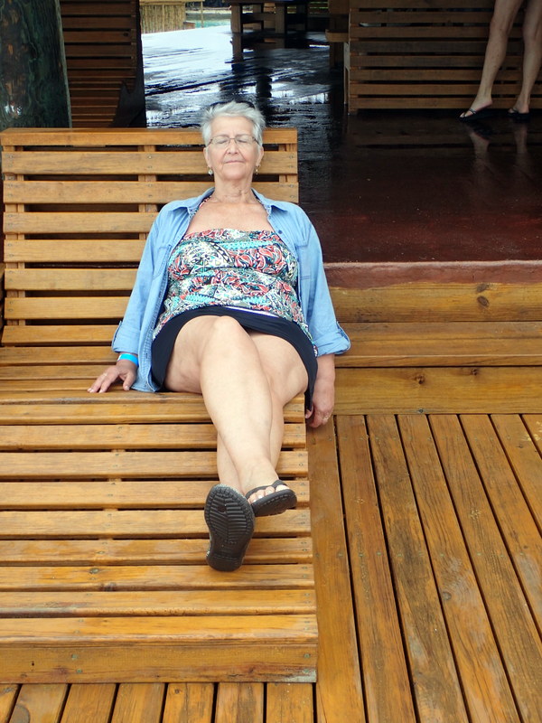 The Jaguar enclosure, this is a new structure.Such a gorgeous animal, too bad it is in captivity.It rained a little early in the day but cleared up and the sun was out the rest of the time there.From the 2nd floor of the new buildingAssessing the situationA swing in the water by the one barCis chillingNice swing but it was all slimey, grossed me out.floatinglooking pretty comfyCheryl, drink in handWatching some young girls jump off of the Bottom’s Up bar.