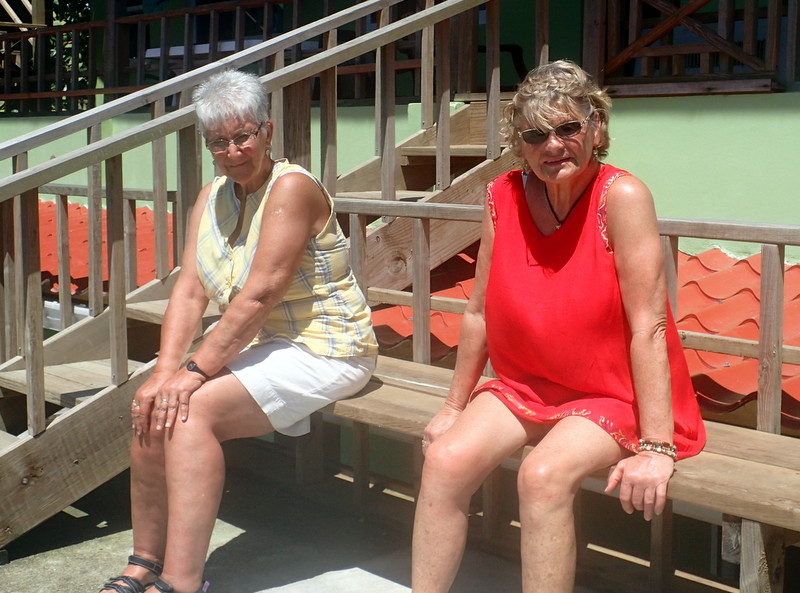 Yes, Jeanie calls them ZORIES. It’s a fine name but to me they are flip flops..Did I mention the girls brought me BANDIT???Jeanie took this photo of Cheryl, me and Cicily as we were waiting for the boat to take us home.