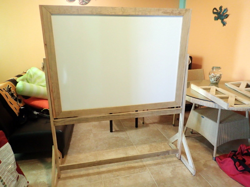 The white board Bill made, it has a locking mechanism on the sides so you can flip it and use the other side too.Supplies