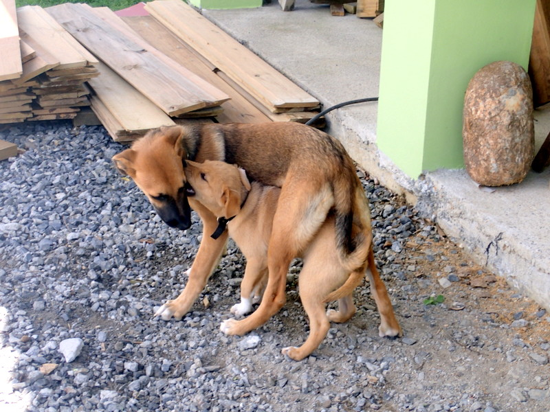 Frito somehow thinks she should be an inside dog and that it is her duty to guard Emmy’s food dish, plus she loves Em’s water fountain. Emmy would rather she be outside all day every day. I have been walking her every morning and this dog can RUN. I kick the dried Hog fruit seeds down the road and she takes off chasing them. It’s the only time I can get her to play. Lola loves to play ball but I can’t get Frito to grasp the concept. Lola is still a pisshead. I’m having Bill bring up the other dog crate and I’m going to start crating her. She will hate it but you know what, I hate dog urine on my porch every day! Lola and the boy next door have a “thing.” He is only 8 weeks old and he bites the living shit out of her. He has needle like teeth. She will take it for awhile and then she snaps.