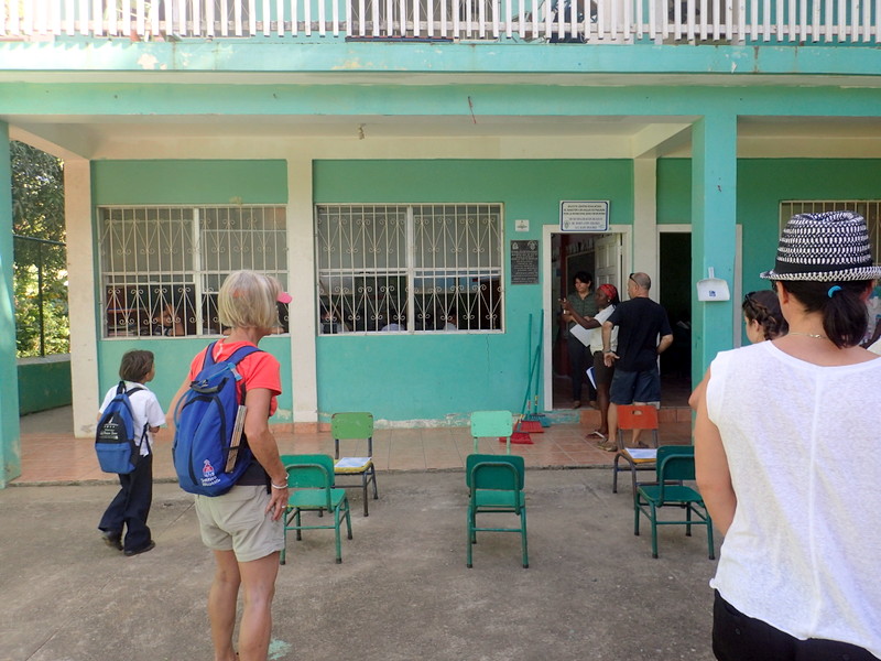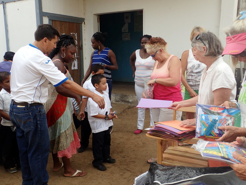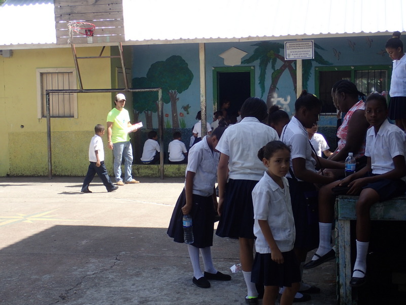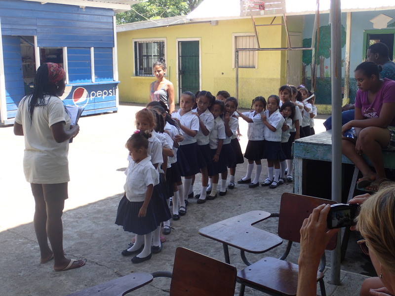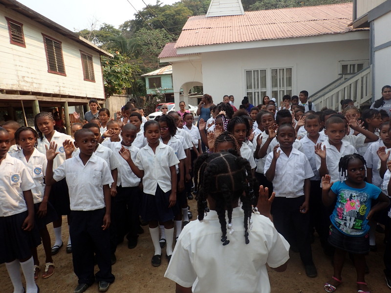 Just a few more stops and the day would be over. Next was a big school in Spanish town. The school director was told to have the kids there at 1 but she reportedly told the students 2. We fit as many as were there and then waited. All but 20 some showed up.