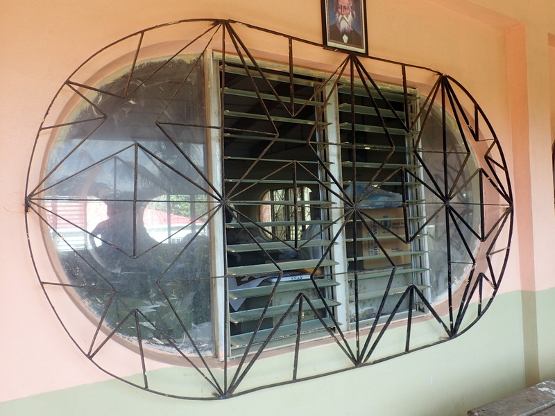 Santa Maria. This was a small school also.Unusual to see curtains like this in a school.This little girl is gorgeous!Ornate bird wrought iron window bars