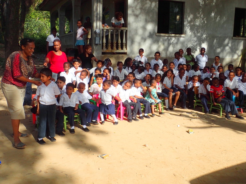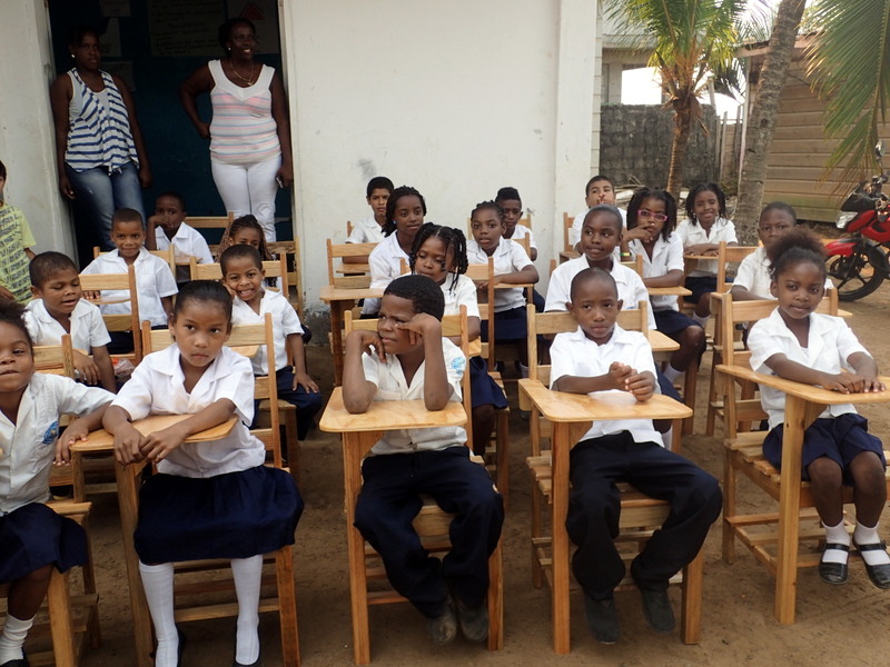 Our last school was in Wild Cane. Nidia and Abraham and Because We Care delivered 10 desks to the school recently and now the kids were getting shoes.