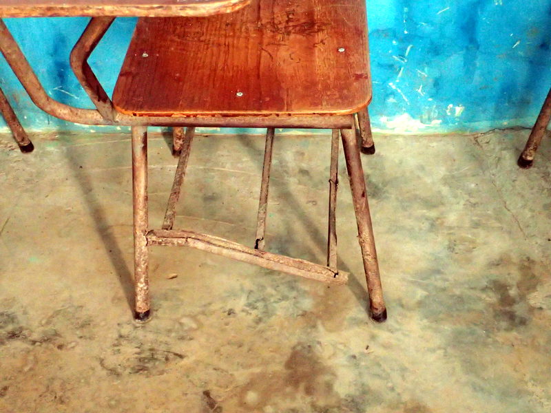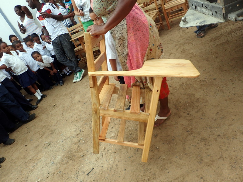 The desks in the schooltwisted rusted metalThey are in bad shapestudents sitting outside on their new desksschool doorknobHappy students. The chairs were taken inside after Nidia told them about taking care of them. We were all done passing out school stuff when a teacher came out with a little boy. He had been in the classroom taking care of his desk.Getting toothbrushes and school supplies. Karen (KP) in pink.I remembered several of the students from fitting shoesNidia with the students