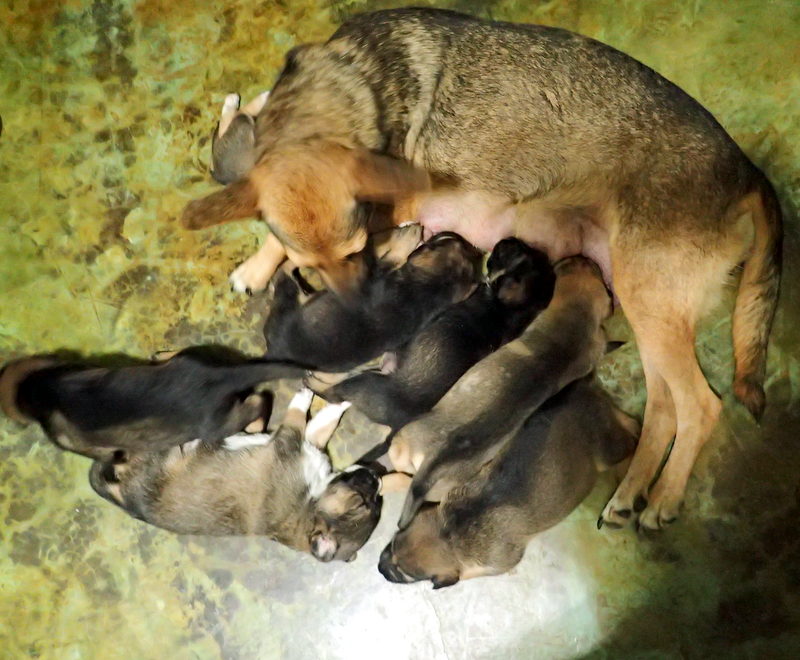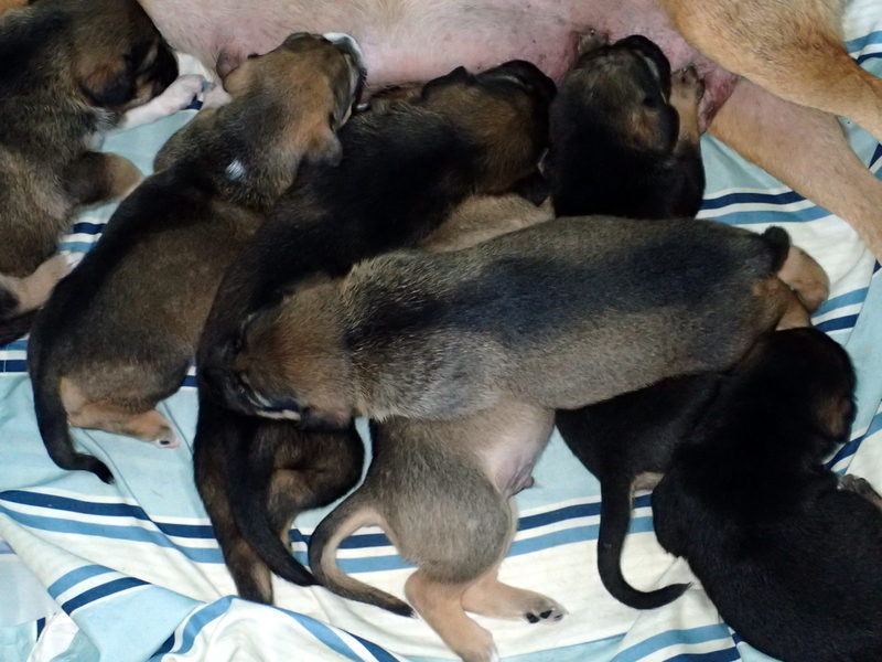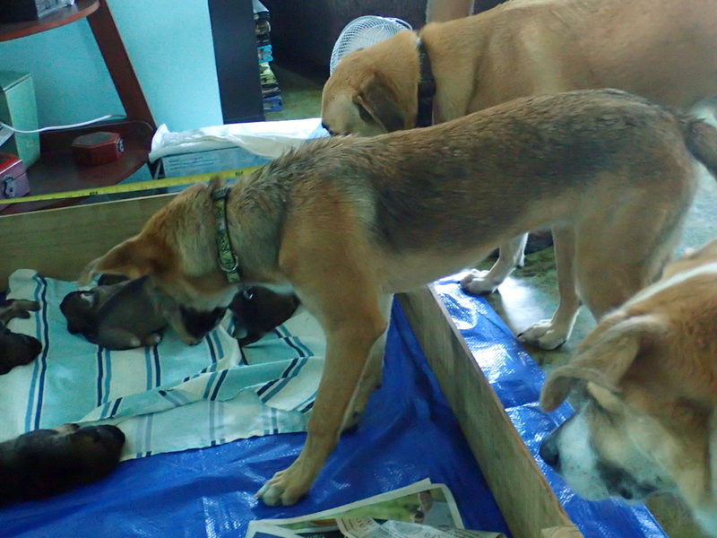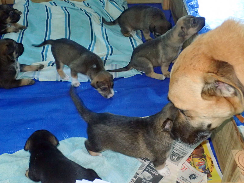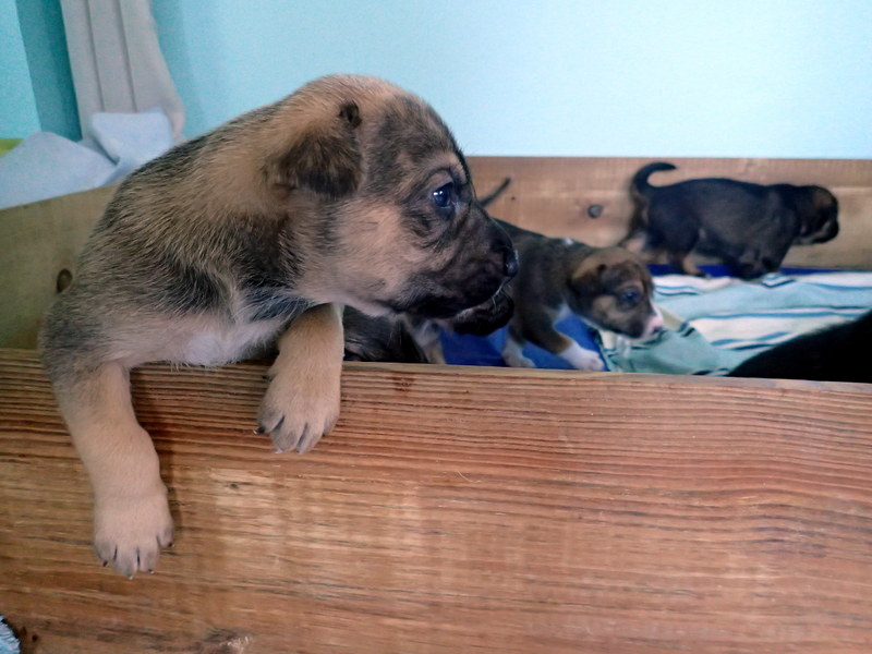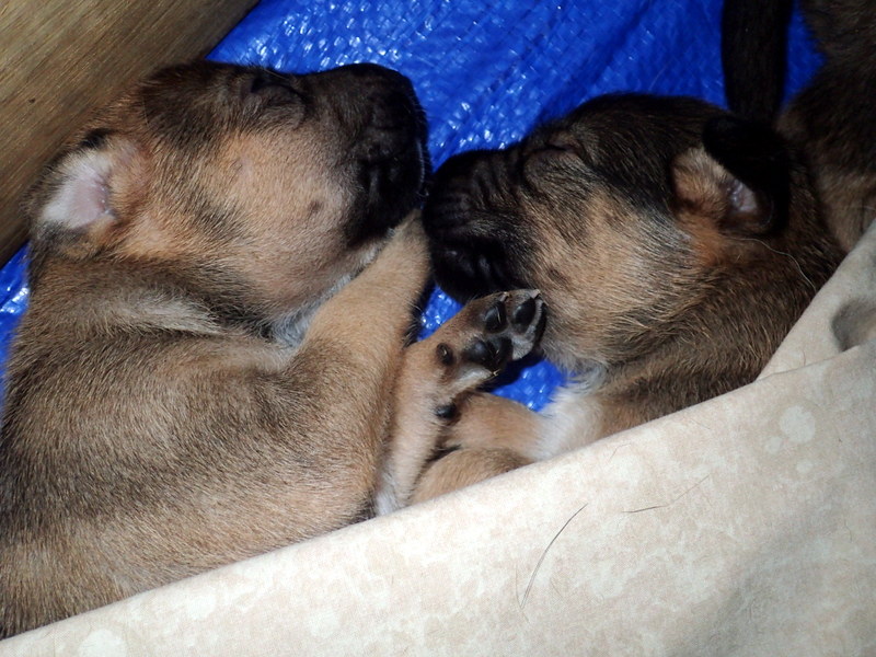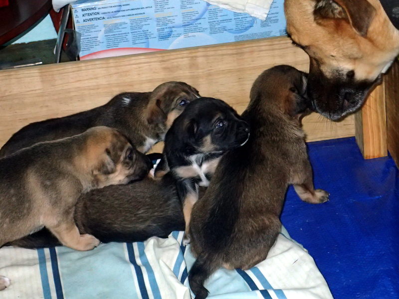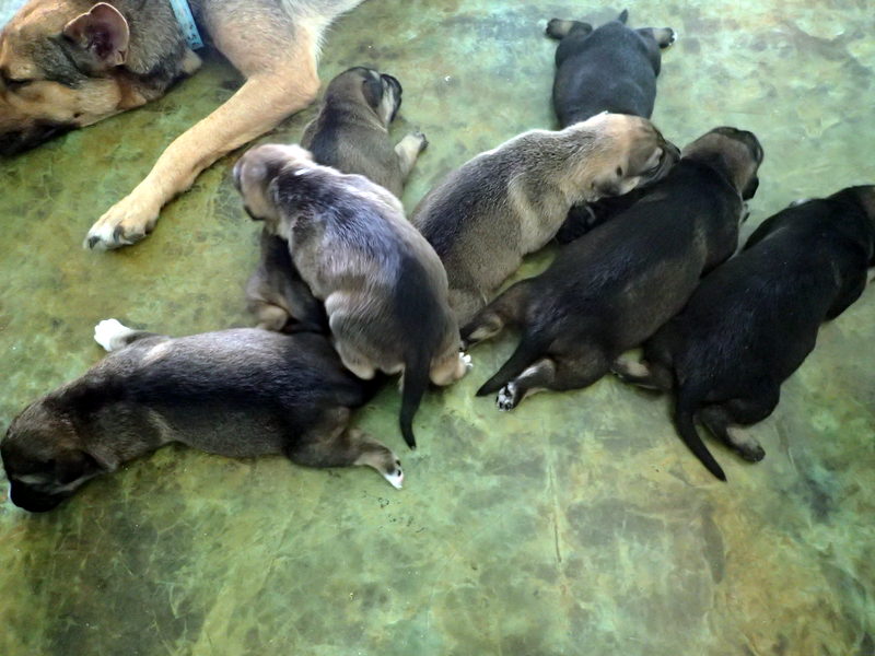 We are living in Puppy Central. It’s a special kind of neighborhood, one where you don’t get shit done all day long because all you do is PUPPY STARE. Yes, we sit for hours and watch these little creatures develop before our very eyes. Their eyes opened and they are all a milky blue color, they really can’t see very well yet but that is coming. Cuteness abounds in this household, so does puppy pee and poop. We have lots of both!