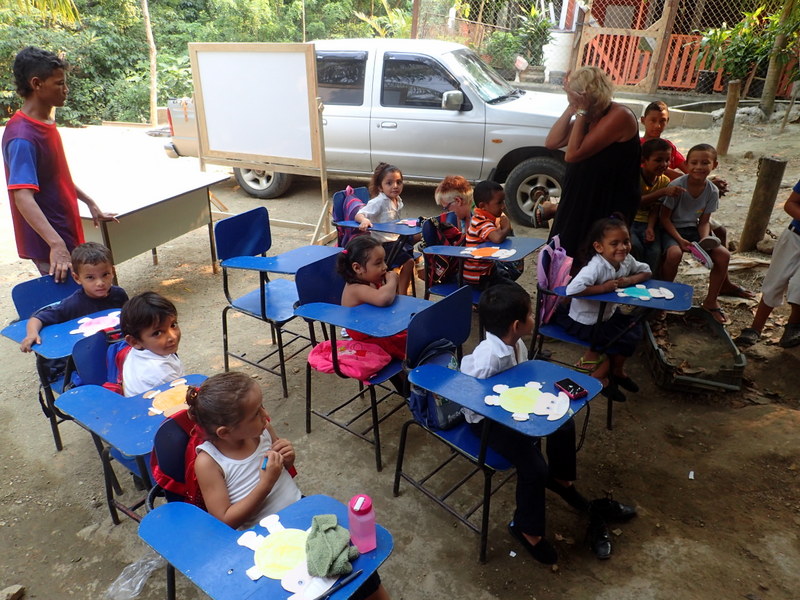 Our next stop was Isla Bonita. I had never heard of this school nor had a clue where it even was. The road to get down to it was very steep. Nidia asked me to look at it to see if I could go down it with my car. Yep, I sure can, no problem at all, just put it in low and go! This too was a very small school, we didn’t even take the boxes of shoes off of the truck.