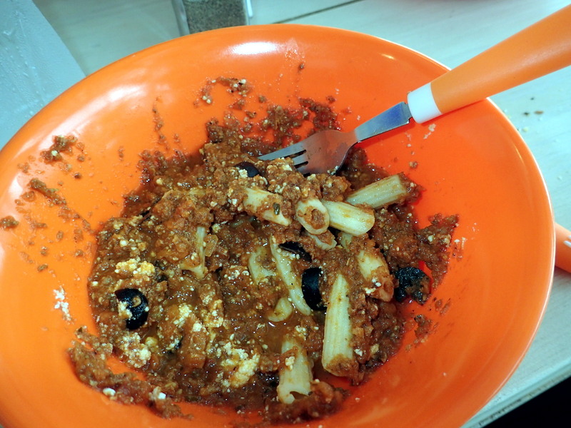 Pasta with sauce and black olives, $8.00. It was A LOT of food.Definitely going back.Looks out over West End road and the water.