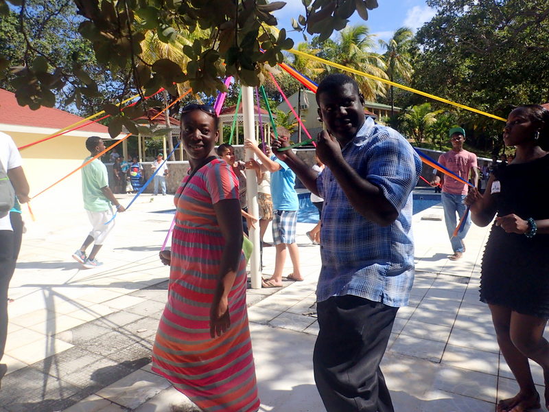 After dessert was served, they did a Plat Pole up by the pool. I know this as a Maypole that we did in school on May 1st. BUT IT WAS NEVER THIS MUCH FUN!! They were rocking out to music (video) and dancing and weaving in between each other, it was so much entertainment. I loved it when Miss Linda, who had a pitcher in one hand, pulled me out to dance with her..